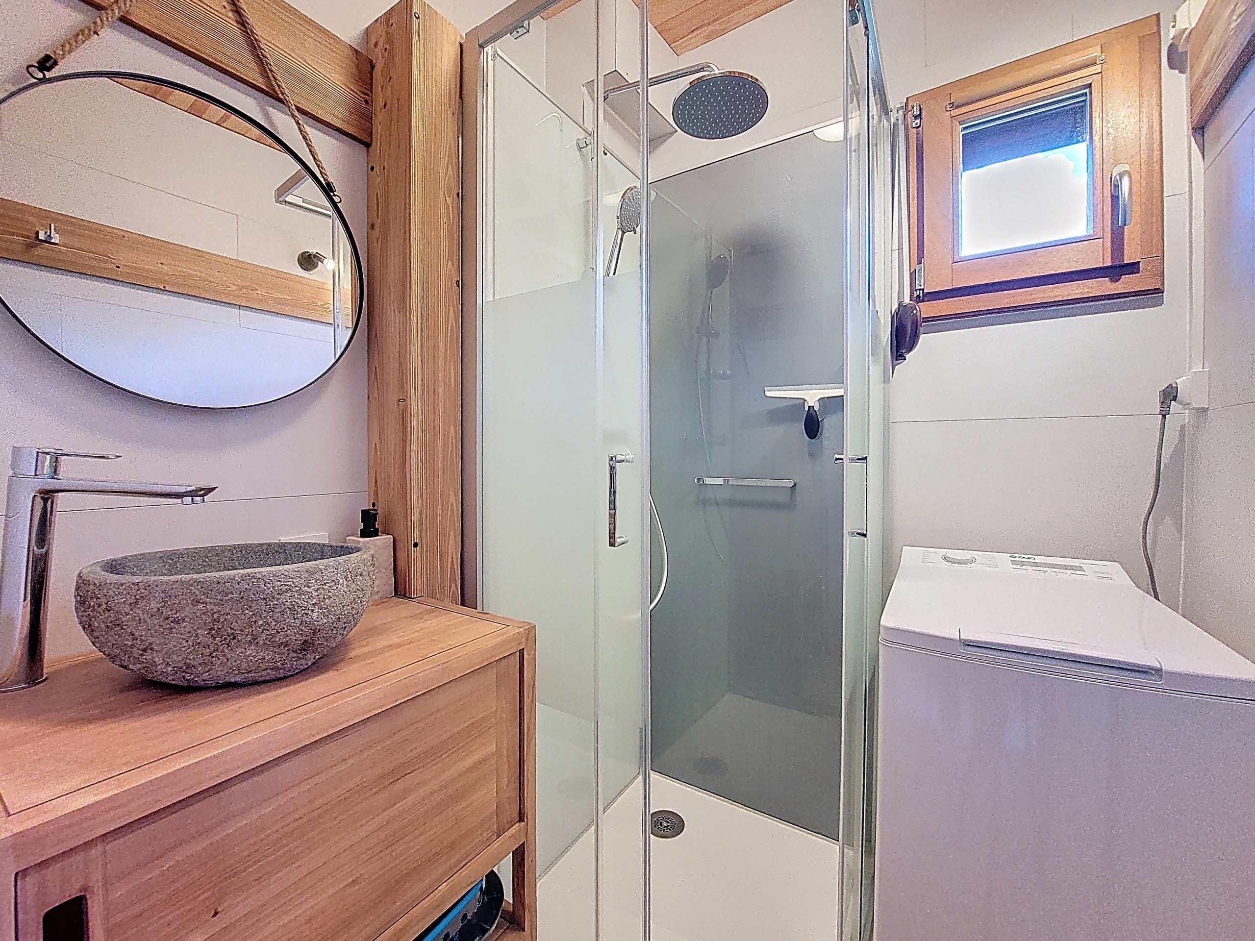 On the ground floor, a large garage serving as a ski room and bicycle room to store your equipment. There is also a water point for washing bikes in the summer.