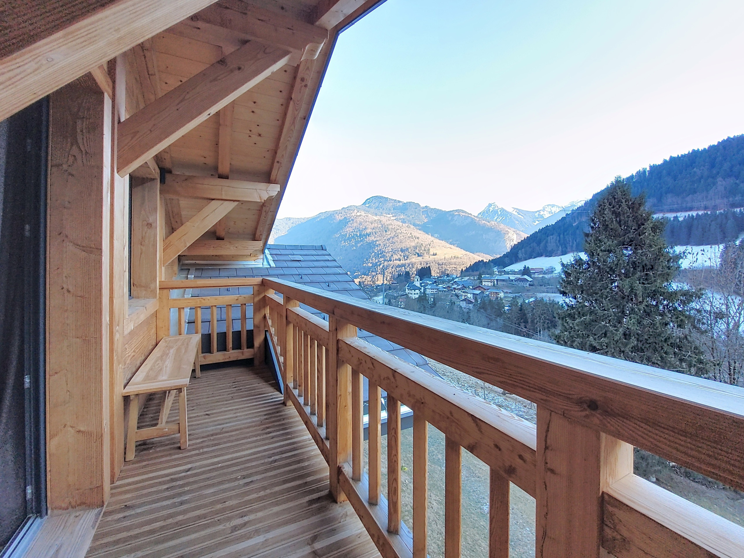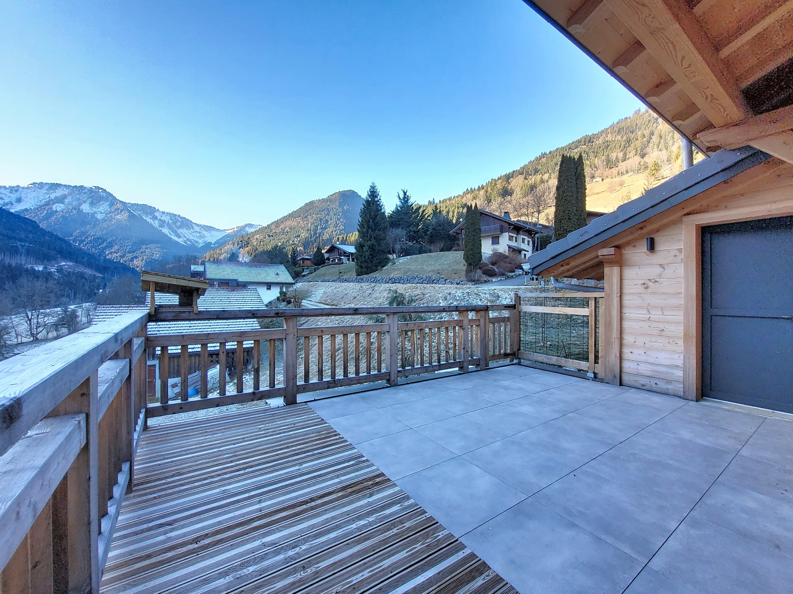 A large terrace running the entire length of the chalet.