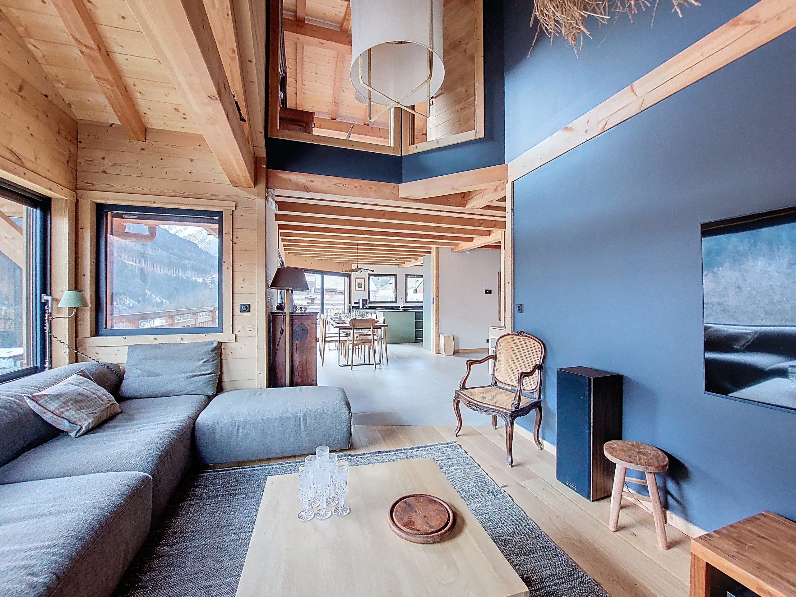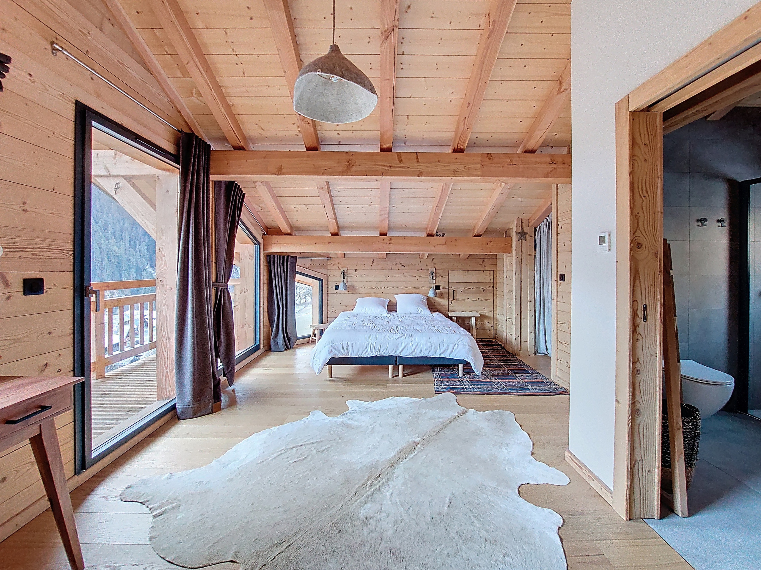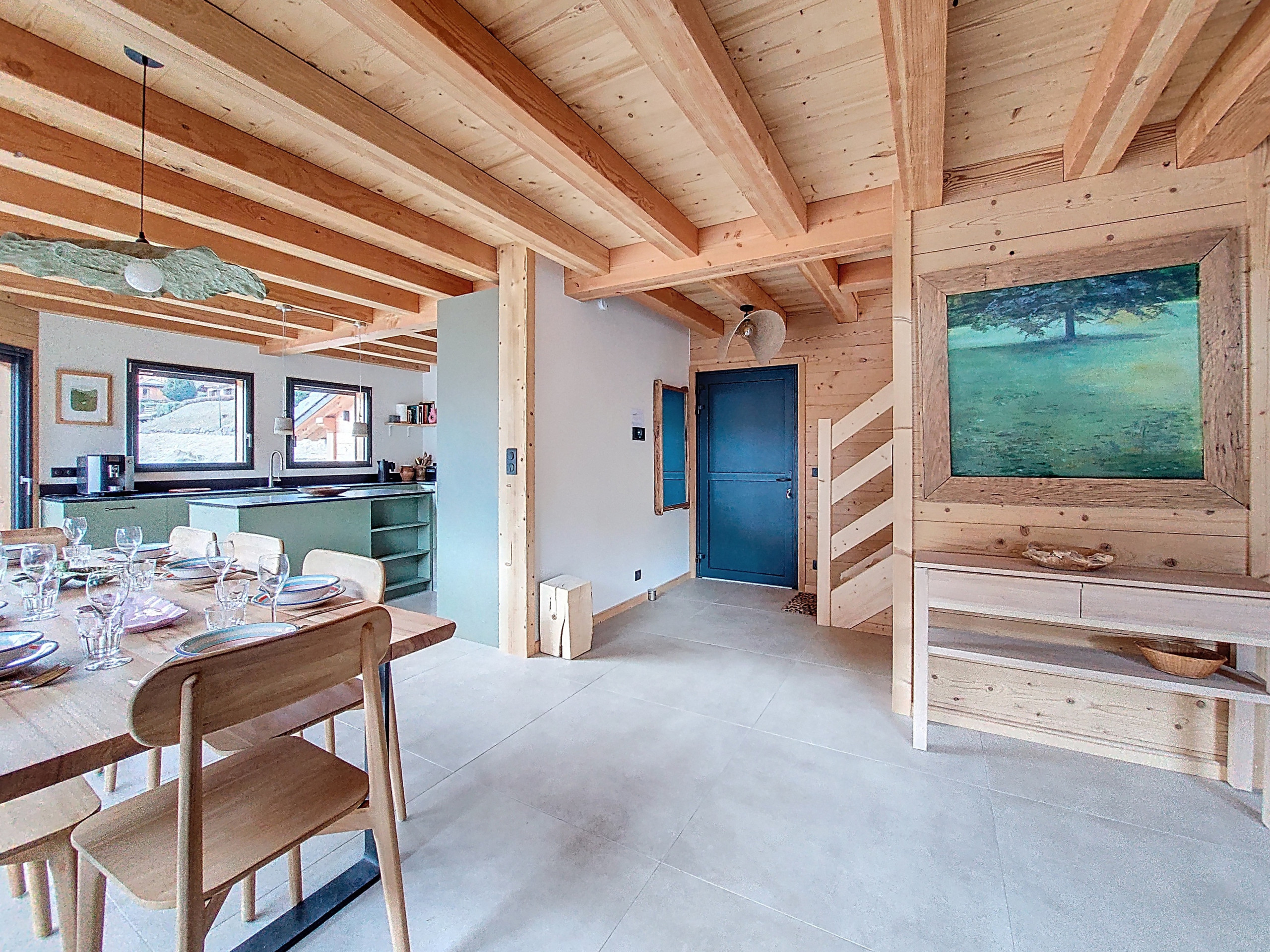 • The entrance to the chalet leading to the living area with: