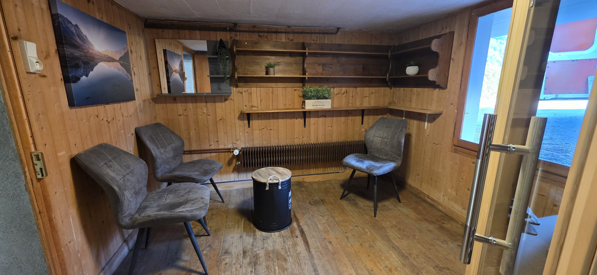Au rez-de-chaussée, un grand garage servant de local à ski et de local à vélo pour entreposer votre matériel. Il y a également un point d’eau pour laver les vélos l’été.